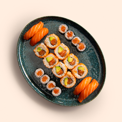 7 8 URA SALMÓN TOBIKO, 8 MAKI SALMÓN8 URA SALMÓN TOBIKO 8 MAKI SALMÓN 4 NIGIRI SALMÓN 4 NIGIRI SALMÓN